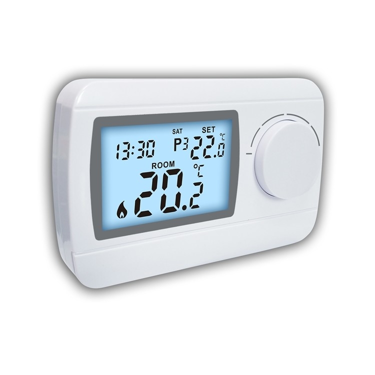 This is a digital wired 7 day programmable gas boiler room thermostat