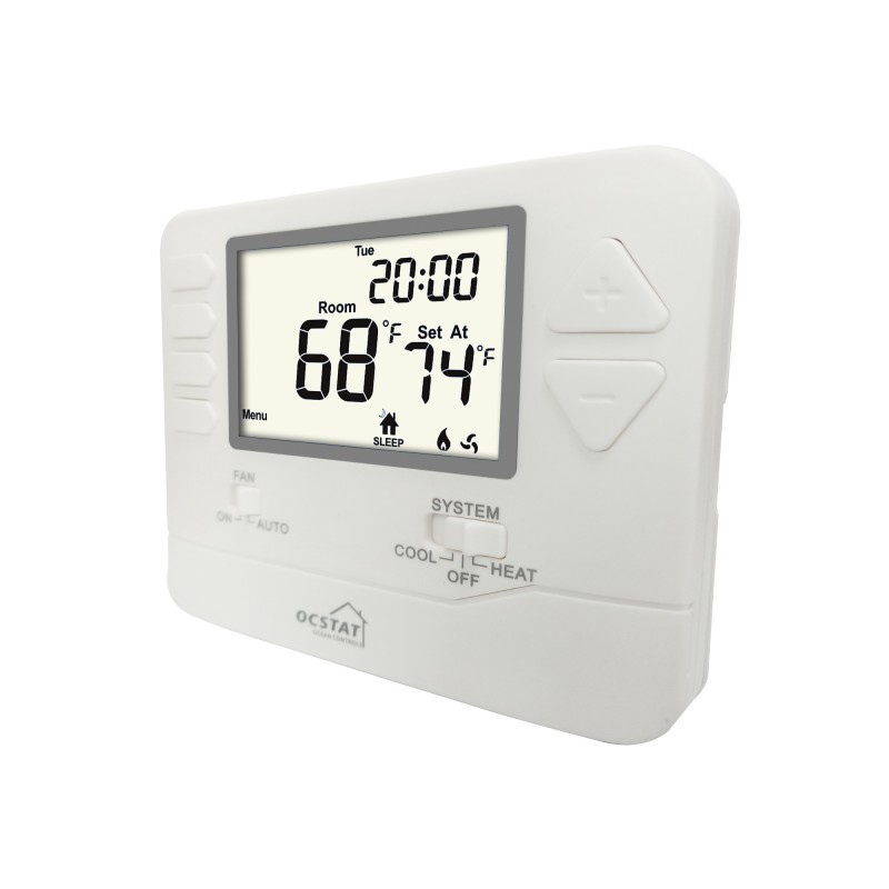 The OCSTAT STN705 is a high-quality Electronic Room non-programmable thermostat designed for precise temperature control. As a Wired Room smart thermostat, it features an LCD Digital Display for easy reading and operates within a temperature range of 32°F to 99°F (0°C to 40°C). This Wired Room smart thermostat supports 1H/1C Heat Pump configurations without auxiliary or emergency heat, making it ideal for efficient heating and cooling management.