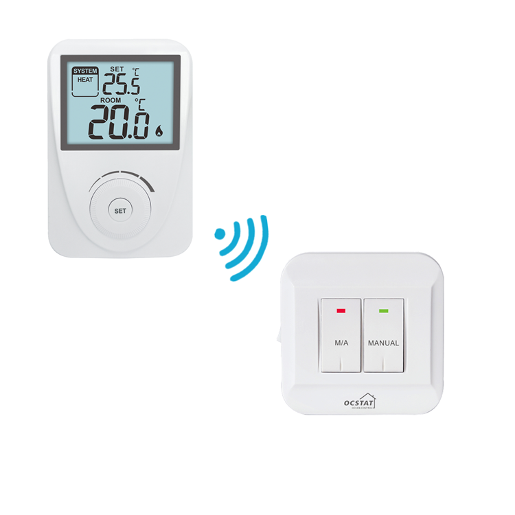 Der OCSTAT Wireless Room Thermostat, Modell ST2603RF, ist eine fortschrittliche Klimaanlagelösung, die für eine Vielzahl von Anwendungsfällen und Szenarien entwickelt wurde.Dieser nicht programmierbare Thermostat kombiniert Benutzerfreundlichkeit mit zuverlässiger drahtloser TechnologieDie Funkfrequenz von 868 MHz sorgt für eine stabile und störungsfreie Kommunikation.geeignet für moderne Smart Home-Einrichtungen sowie herkömmliche Heizsysteme.