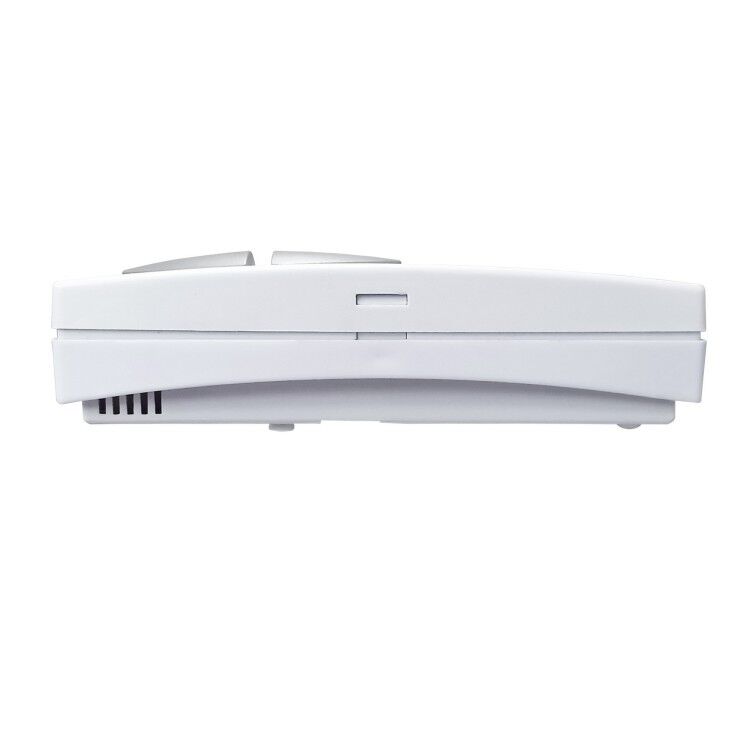 Mit kompakten Abmessungen von 130 x 80 x 35 mm (ohne Halterung) ist der drahtlose Raumthermostat so konzipiert, dass er bequem in die meisten Innenräume passt, ohne aufdringlich zu wirken. Sein schlankes und modernes Design ergänzt jede Inneneinrichtung und bietet gleichzeitig einfachen Zugriff auf die Bedienelemente. Die Größe des Thermostats ermöglicht auch eine diskrete Montage an geeigneten Stellen, um die Temperaturerfassung und die Benutzerinteraktion zu optimieren.